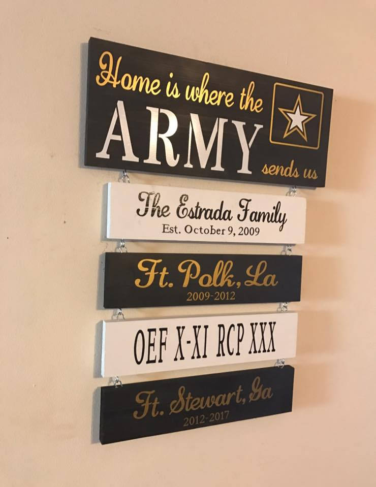 Home is where the Army Sends us sign ConnellyCollection 38 4500 Home Is Where The Army Sends Us Itty Bitty Wood Stacking Blocks ImJustSayinSigns 3078 1790 FREE. See more ideas about military decor home award display. This pillow is shown as a 16 square Cream cotton linen look fabric black and gold appliqued letters reading Home is Where the Army.